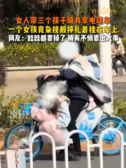 12次播放 | 00:161月12日云南昆明,女人带三个孩子骑共享电动车,其中一个女孩竟杂技般挣扎着挂在车上,网友:娃娃...