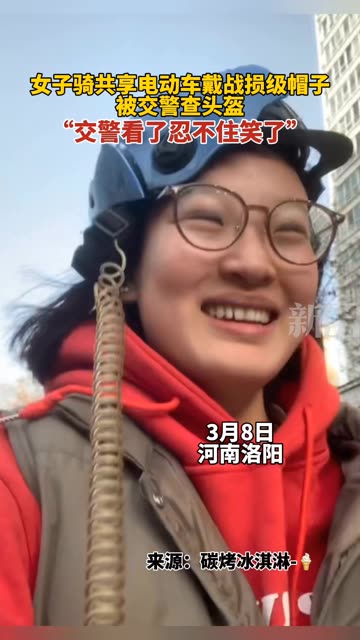 0次播放 | 00:07女子骑共享电动车戴战损级帽子,被交警查头盔,“交警看了忍不住笑了”。