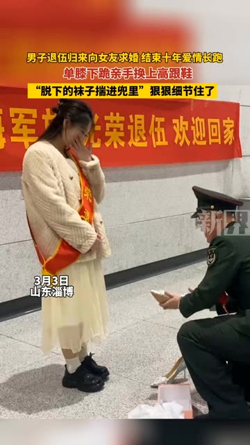 114次播放 | 00:33男子退伍归来向女友求婚结束十年爱情长跑,单膝下跪亲手换上高跟鞋,"脱下的袜子揣进兜里"狠狠细节...