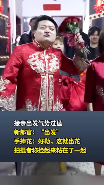 27次播放 | 00:15接亲出发气势过猛 新郎官:“出发” 手捧花:“好勒,这就出花” 拍摄者称捡起来粘在了一起