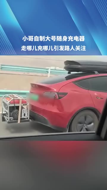 小哥自制大号随身充电器,走哪儿充哪儿引发路人关注。“一次20升油可充40度电”