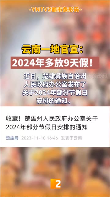 115次播放 | 07:42云南一地官宣:2024年多放9天假!