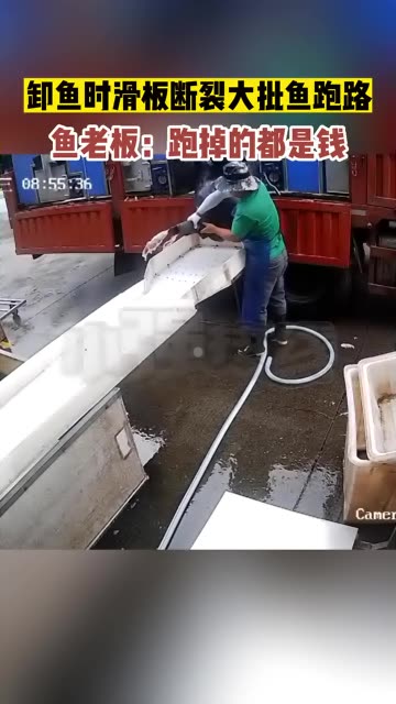 0次播放 | 01:18鱼老板:跑掉的都是钱... 5月31日,江苏常州。作业人员在卸鱼时滑板突然断裂导致活鱼散落...