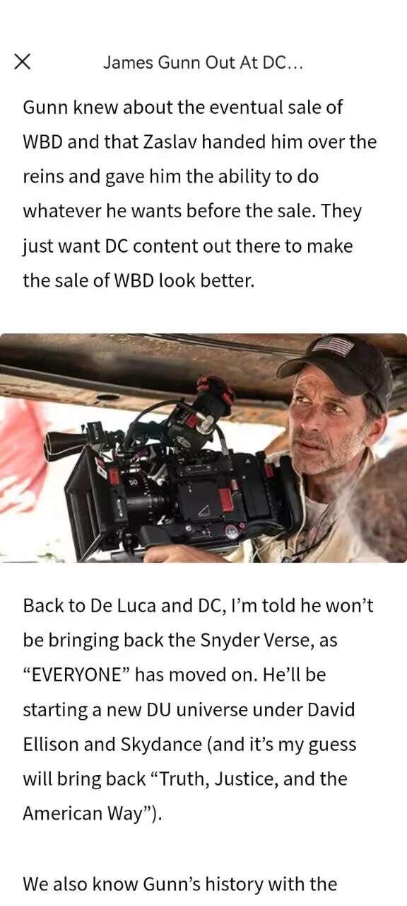 电影业内人士、Heroic Hollywood网站的创始人之一的乌伯托·冈萨雷斯(Umberto Gonzalez)在The Wrap网站的一档播客节目中透露称,扎克·施奈德导演的导剪版《正义联盟》