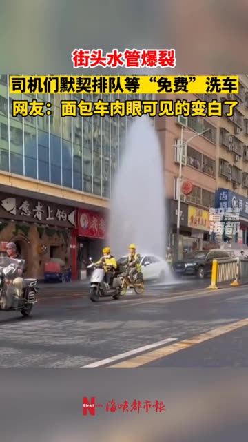 0次播放 | 00:14街头水管爆裂,司机们默契排队等“免费”洗车!网友:面包车肉眼可见的变白了