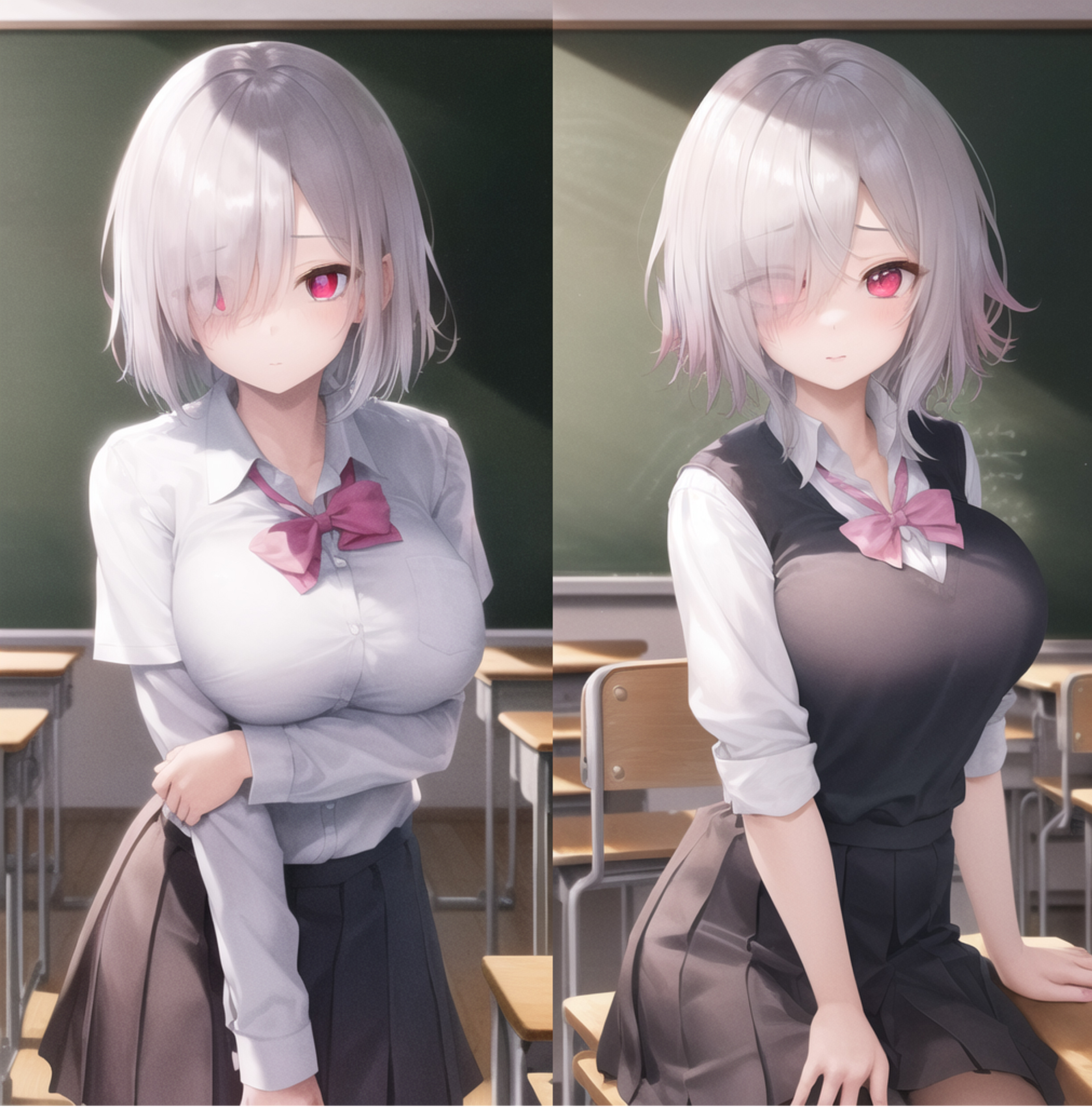 首先给大家看下效果。 左边是使用了DreamArtist训练出来的模型的效果, 右边是没有使用的。tag非常简单masterpiece, best quality,1girl,solo,classro