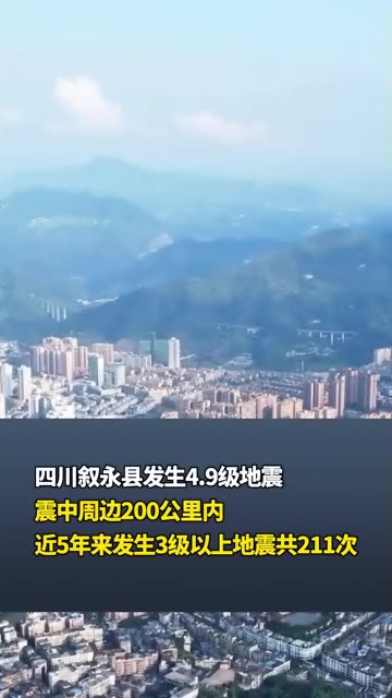 四川叙永县发生4.9级地震 震中周边200公里内 近5年来发生3级以上地震共211次