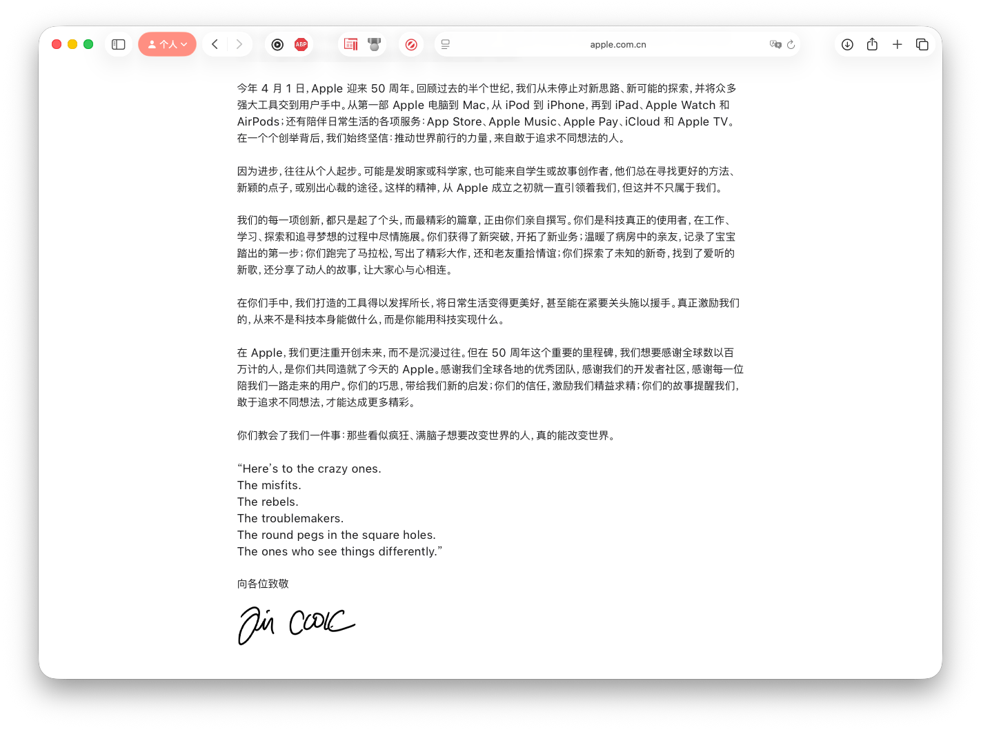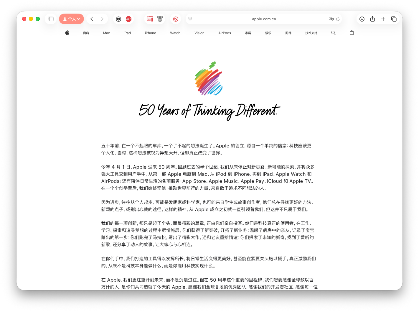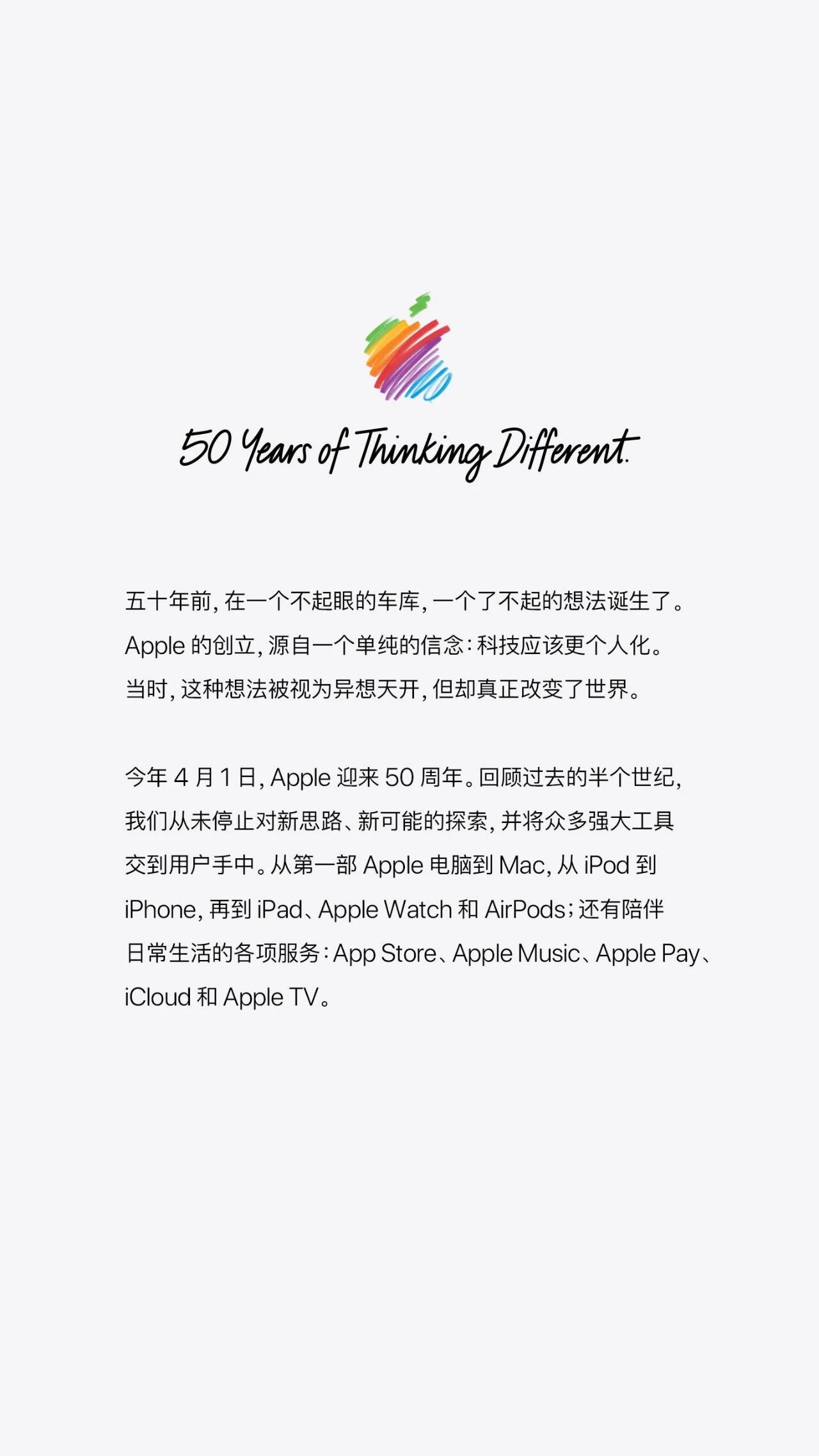 2026 年 3 月 12 日更新从 1976 年 4 月 1 日成立起,Apple 一直秉持着这样的信念:进步来源于挑战传统、想象不同可能。这种“非同凡想”的精神造就了 Apple 的产品与服务,它