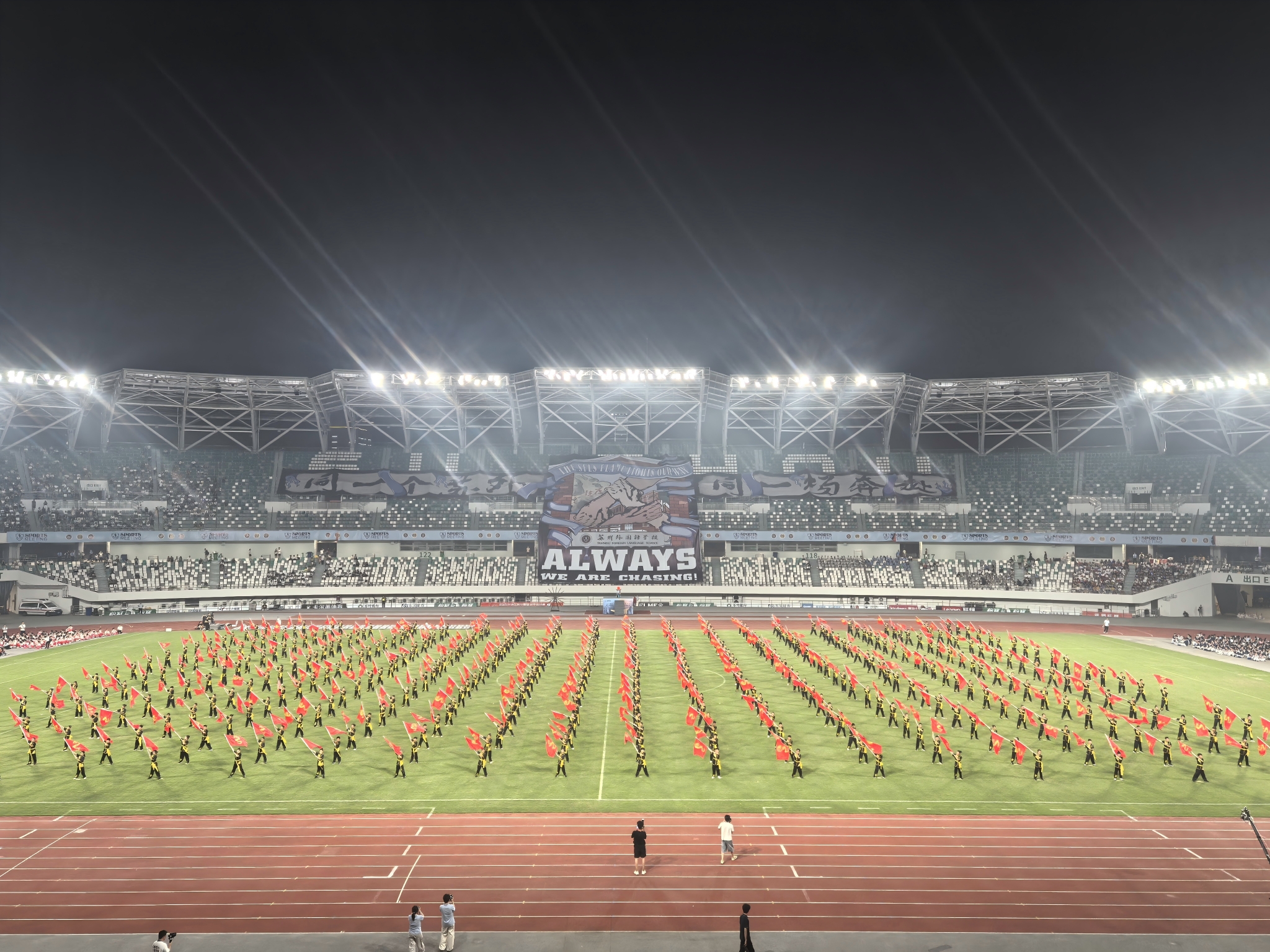 闻览焦点:体育运动当前是江苏的代名词,苏超赛事还在如火如荼的进行着,今夜苏州狮山体育馆内2025苏外教育集团三校联合运动会在镭射灯光闪耀下拉开序幕。当科技遇见体育,当光影点亮梦想。9月28日晚上,“同