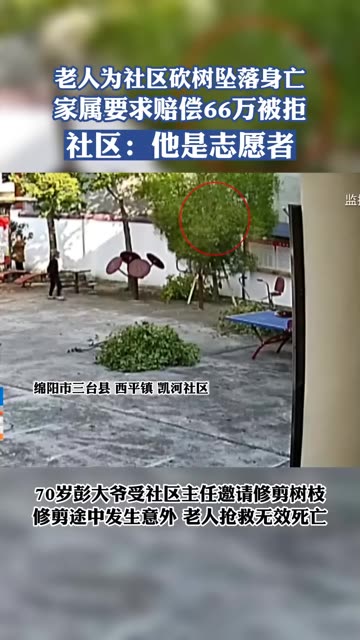 0次播放 | 00:44老人为社区砍树坠落身亡,家属要求赔偿66万元,社区:他是志愿者