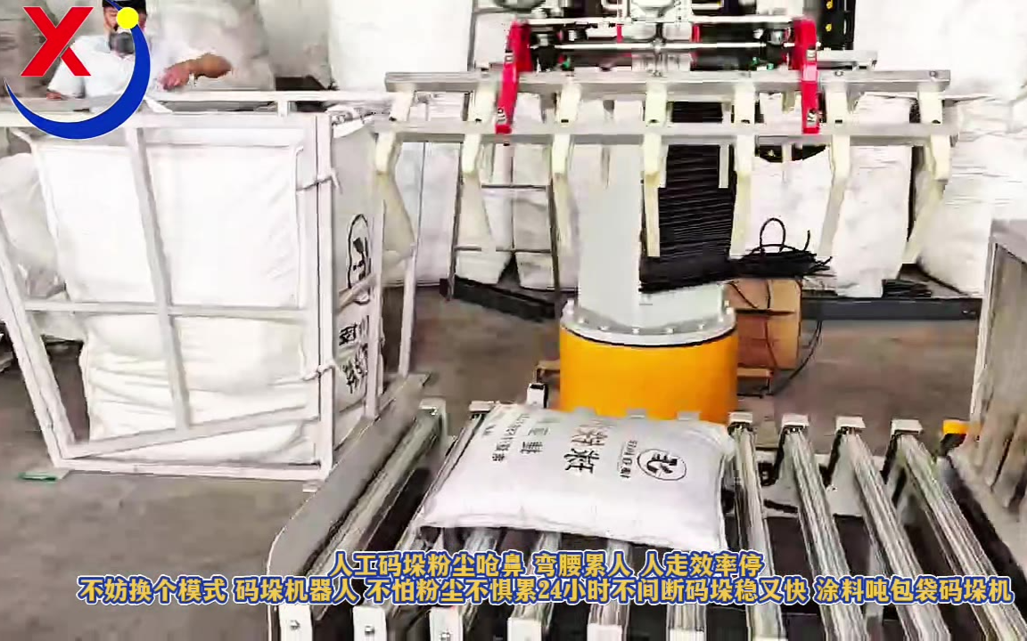 0次播放 | 00:33人工码垛粉尘呛鼻弯腰累人人走效率停不妨换个模式机器人不怕粉尘不惧累24小时不间断码垛稳又快