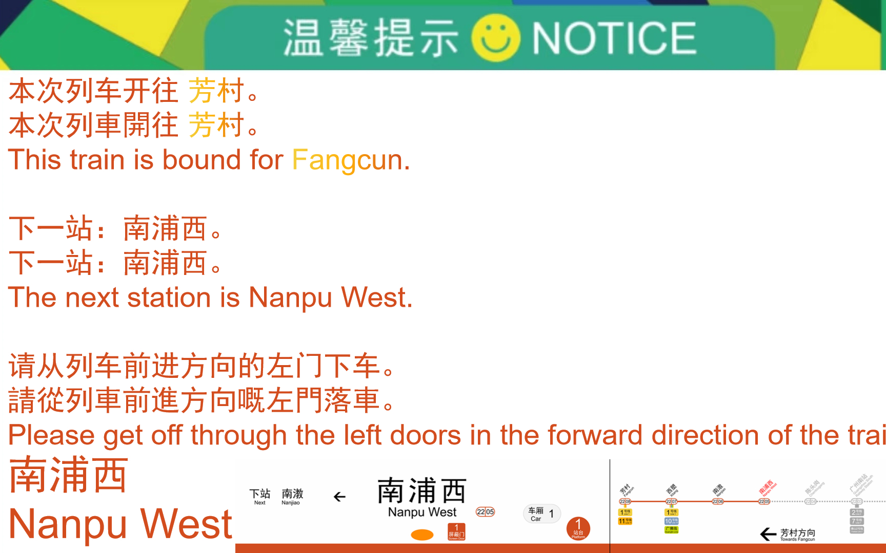 1.0万次播放 | 06:50广州地铁22号线(芳村方向)南浦西模拟预报站+模拟到站广播(机器风格)