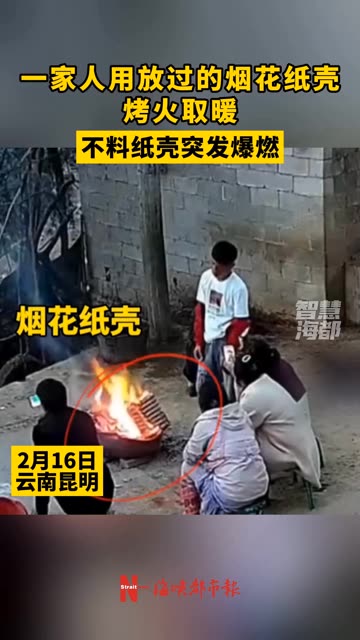 0次播放 | 01:27一家人用放过的烟花纸壳烤火取暖,不料纸壳突发爆燃