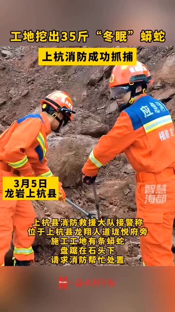 45次播放 | 00:27工地挖出35斤“冬眠”蟒蛇,上杭消防成功抓捕