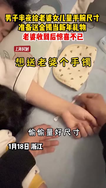 男子半夜给老婆女儿量手腕尺寸,准备送金镯当新年礼物,老婆收到后惊喜不已。