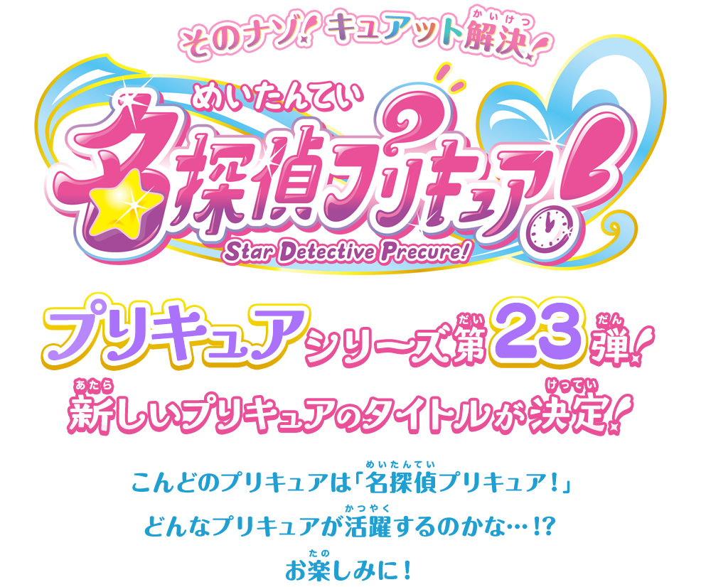 东映动画今天完成了商标"名侦探光之美少女!"的注册,随后官网就确认了《名侦探光之美少女!》为“光之美少女”动画系列的第23部作品。这是该系列时隔十年标题出现汉字(此前都是假名),宣传口号是“这个谜题!