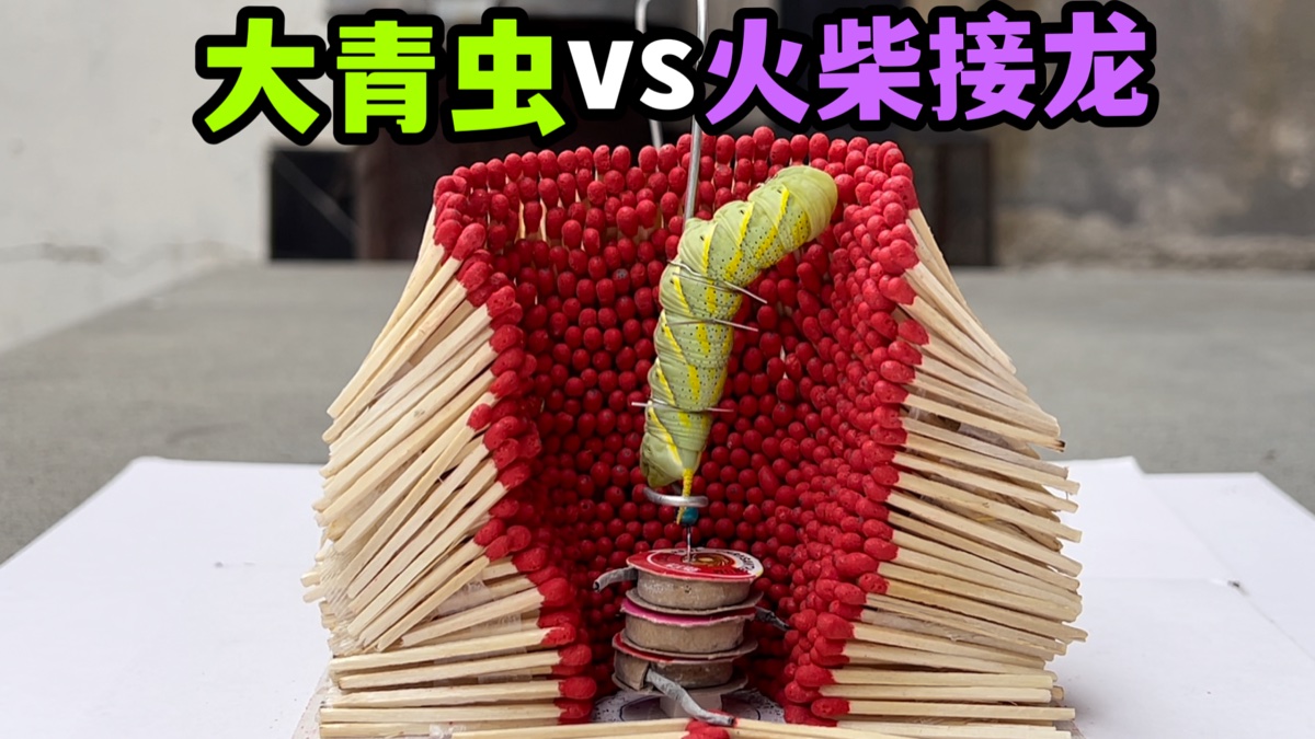 把一只大青虫和火柴接龙放一起!会发生什么事?