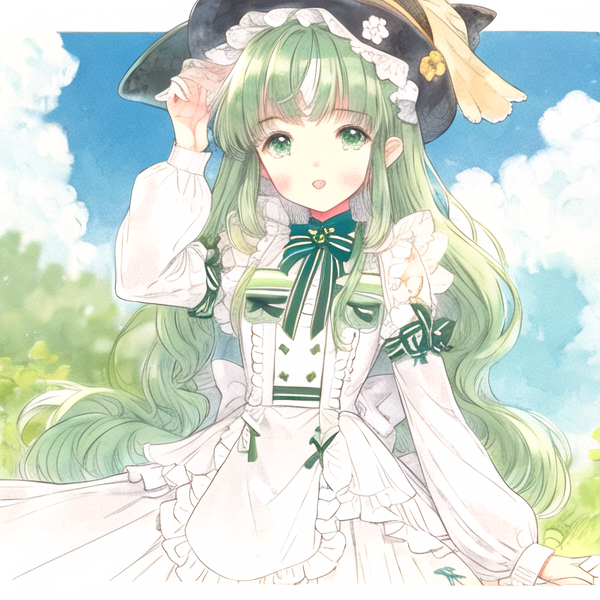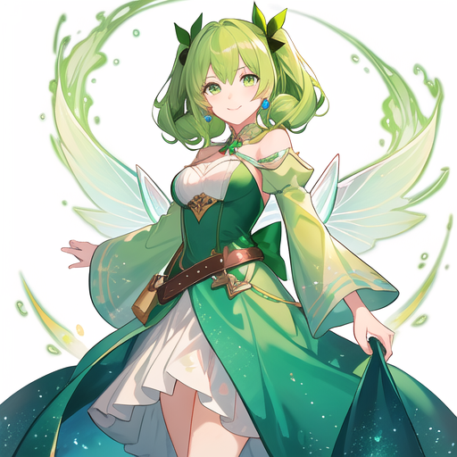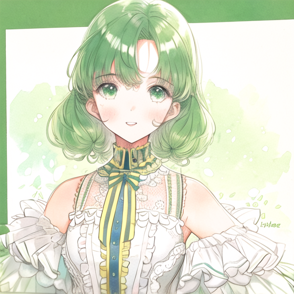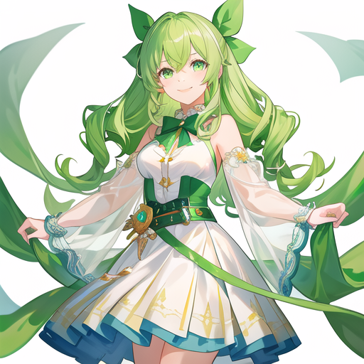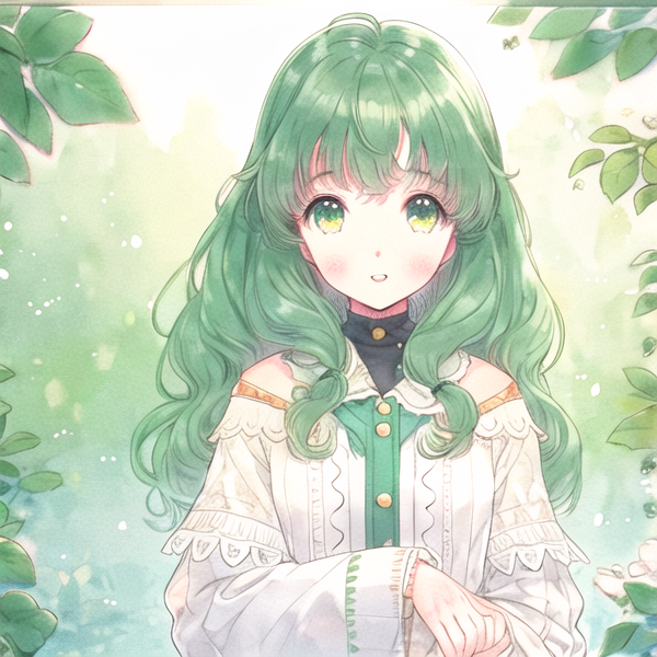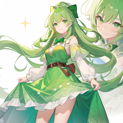 共4张AI绘画:绿发少女