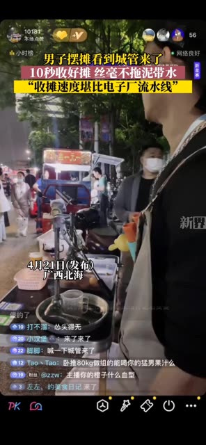 113次播放 | 03:17男子摆摊看到城管来了,10秒收好摊,丝毫不拖泥带水,“收摊速度堪比电子厂流水线”。
