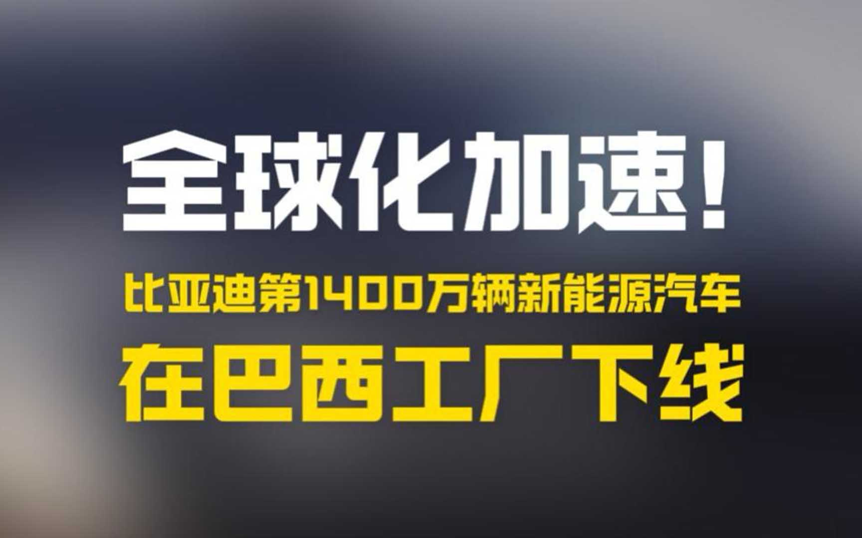 全球化加速!比亚迪第1400万辆新能源汽车在巴西工厂下线