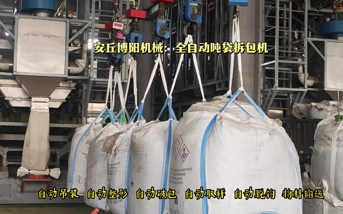 0次播放 | 00:30氧化镁全自动吨包破包机 吨袋全自动拆包站 实现无人化拆包