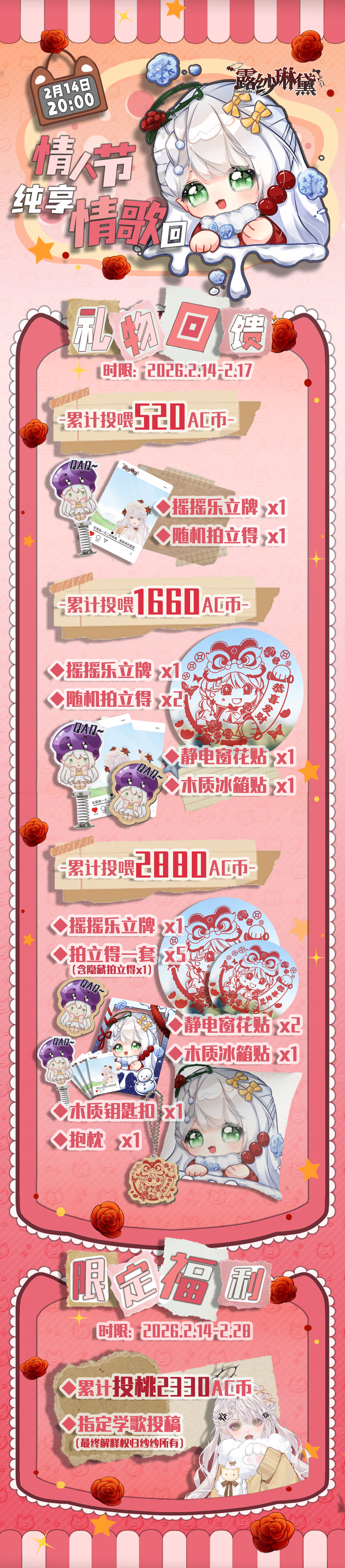 https://www.acfun.cn/a/ac48248432,活动入口别忘了哦~那么,说明一下这次活动特有的好感度系统,准备可能比较仓促所以可能会出现一点小问题(明明就是懒)关注并且在直播时投喂