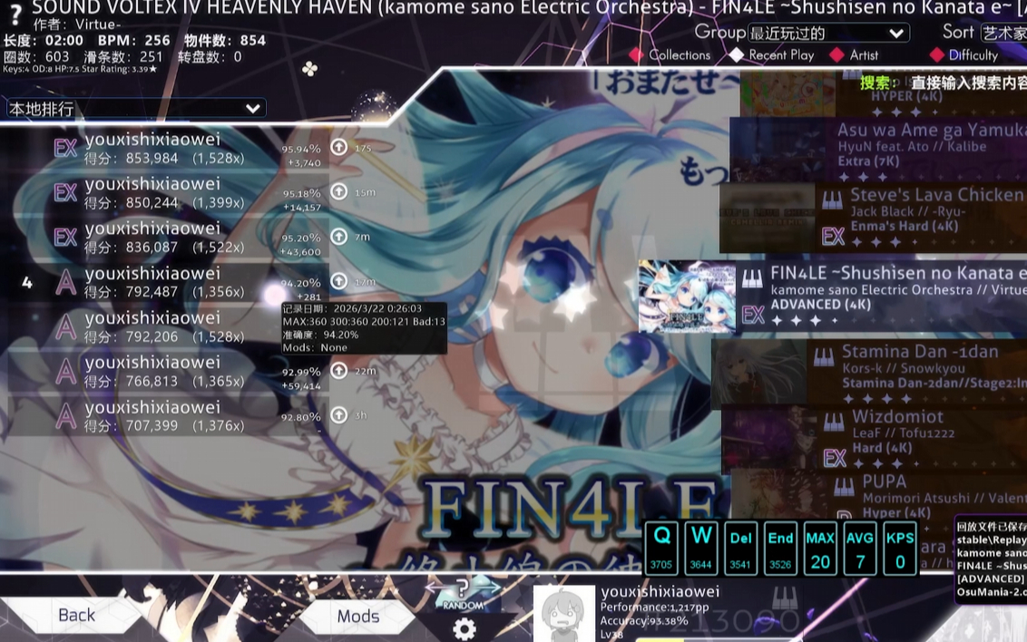 291次播放 | 04:21【OSU!/mania】“3.39星”曲师名太长放简介-FIN4LE ~終止線の彼方へ~