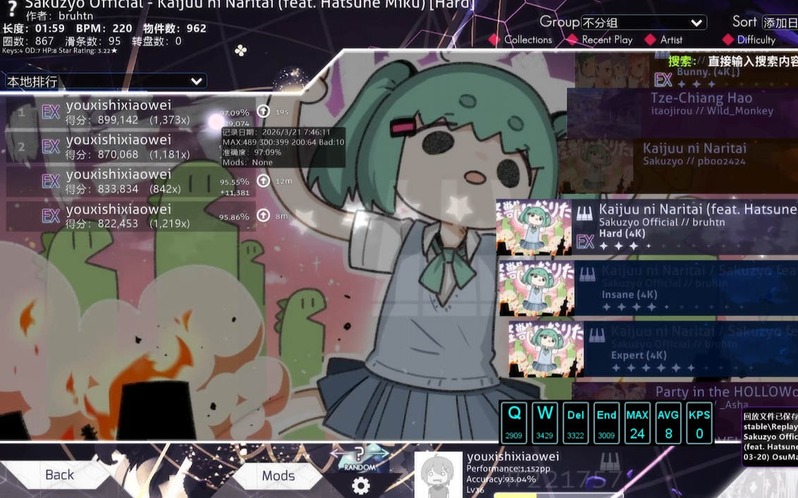 286次播放 | 02:38【OSU!/mania】Sakuzyo Official-怪獣になりたい (feat. 初音ミク)