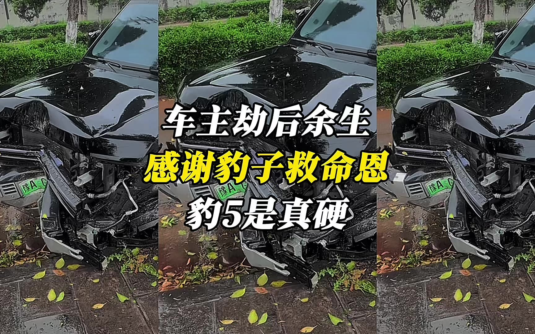 感谢豹子救命恩!雨天撞断树车主毫发无损,豹5是真硬