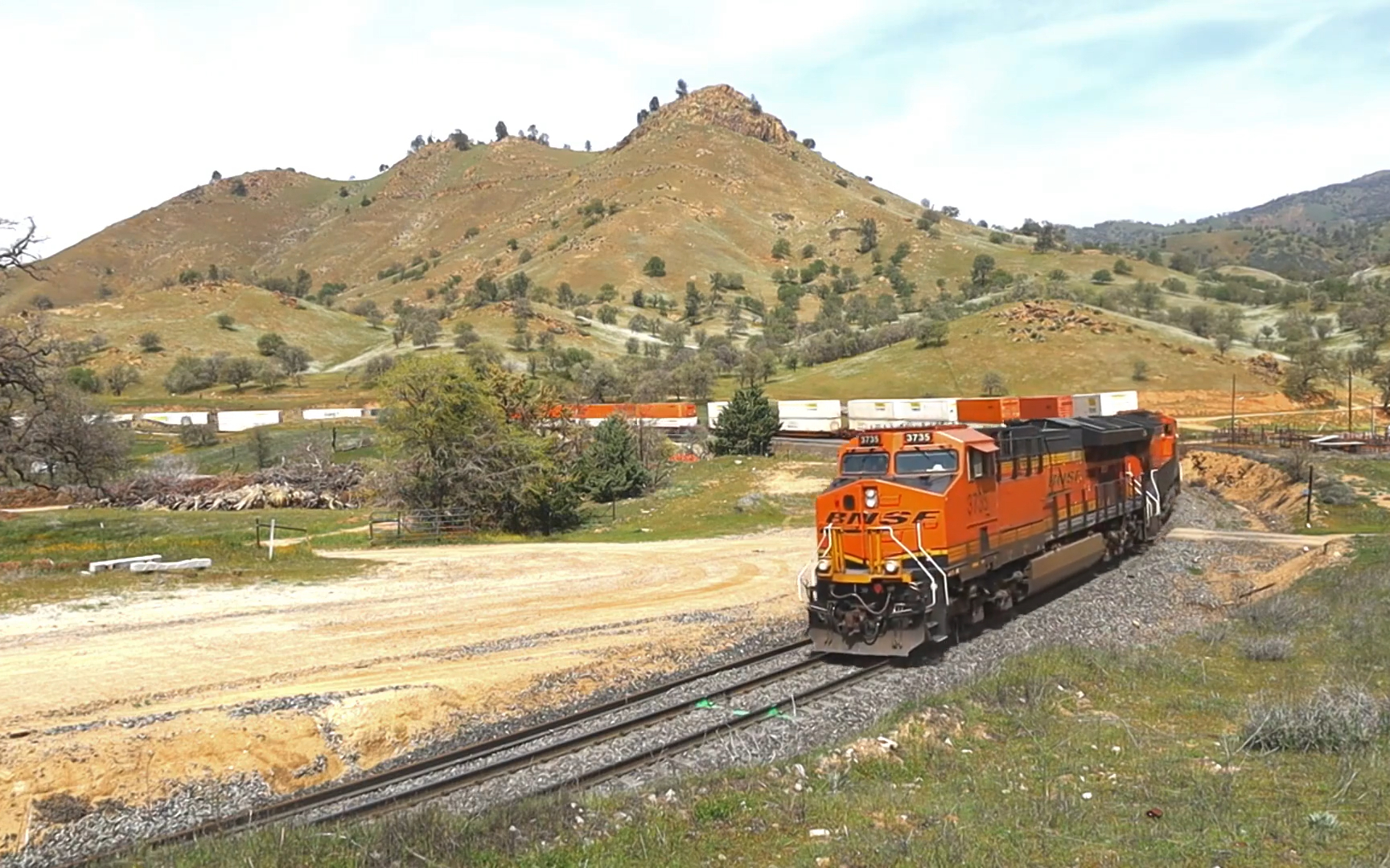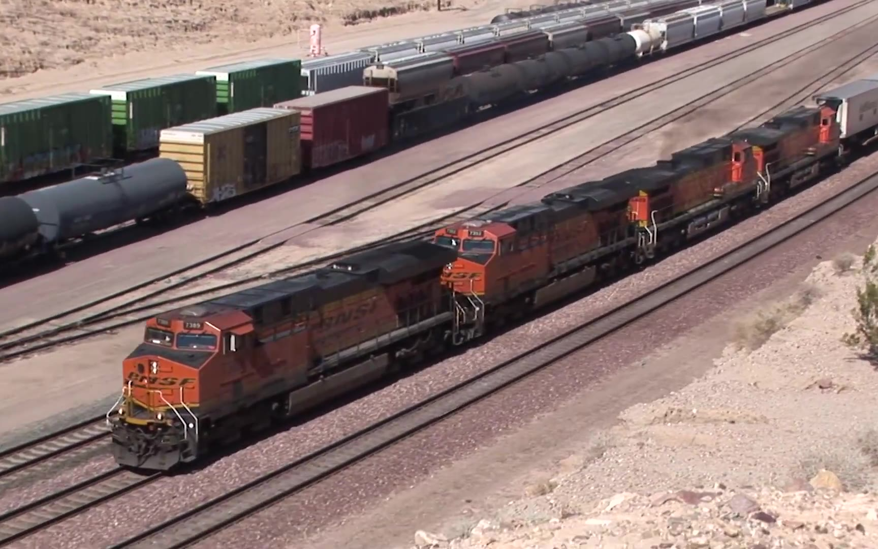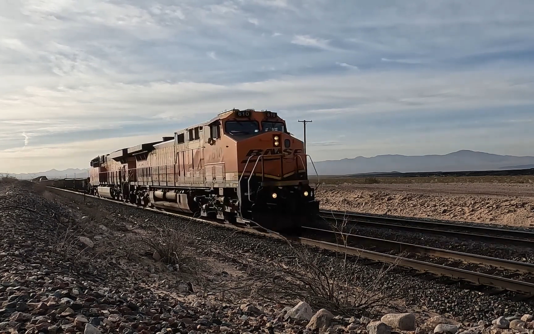 【世界铁路】在巴斯托车站站拍穿行在沙漠中的BNSF公司重载列车