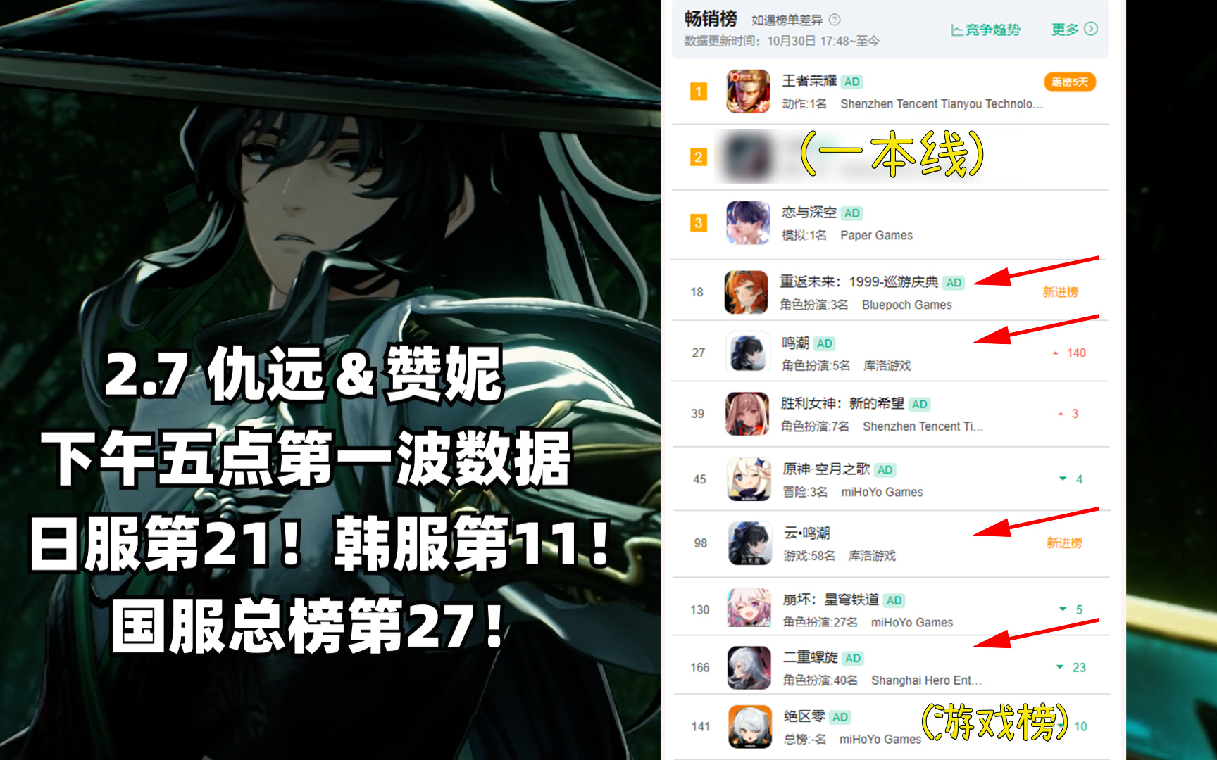 (鸣潮)2.7仇远&赞妮 卡池流水出炉! 一波国服第27!日服第21!韩服第11!云鸣潮第98!ST