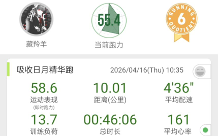 10公里46分05秒平均心率161平均配速4分36秒