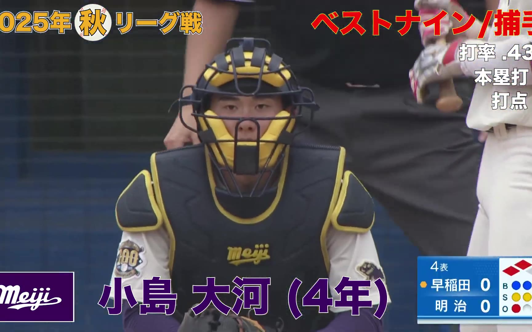 【ベストナイン】明治大学(4年)/捕手 小島 大河(東京六大学野球2025年 秋季リーグ戦)
