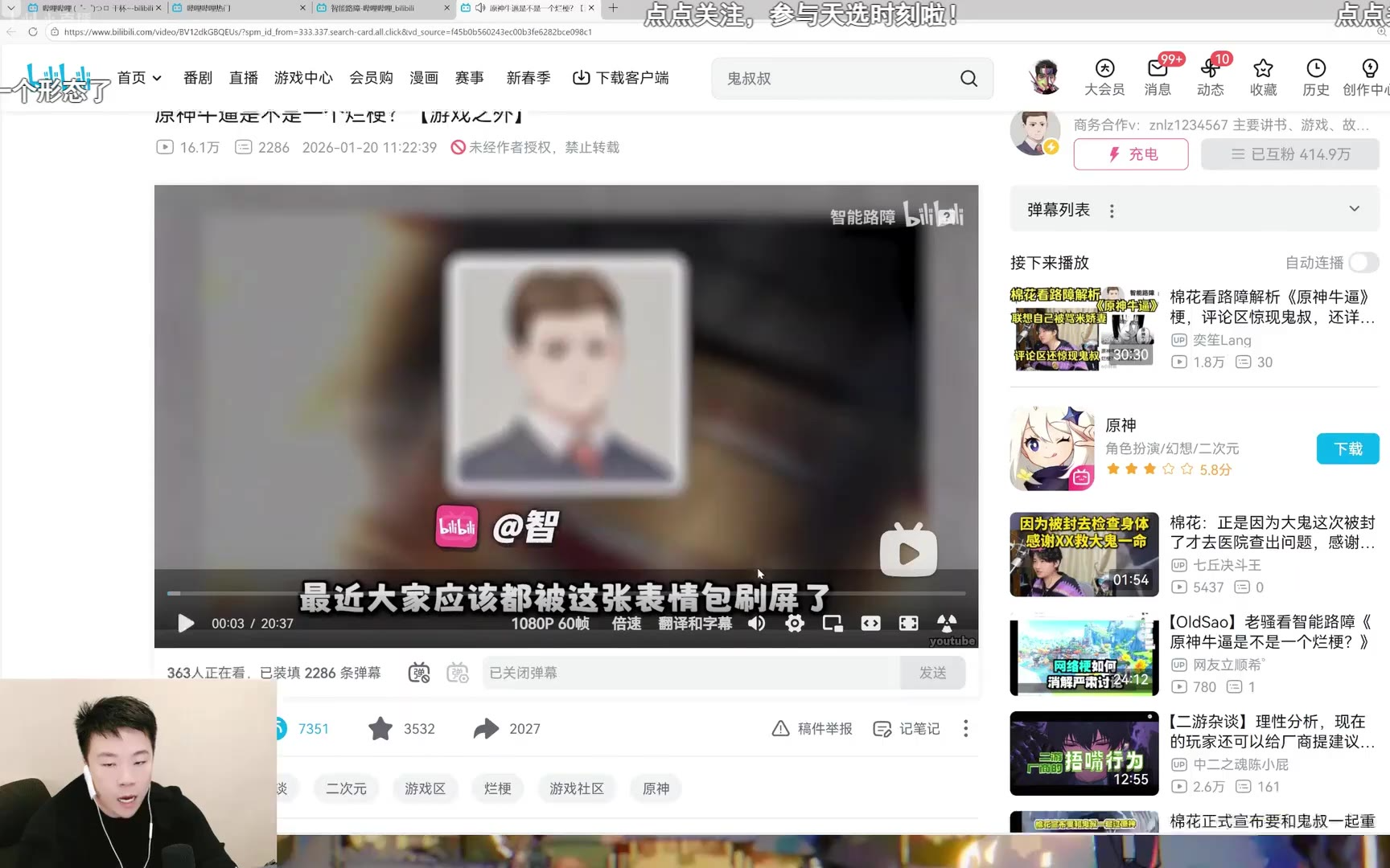 鬼叔黍看智能路障聊原神牛逼的视频的直播回放