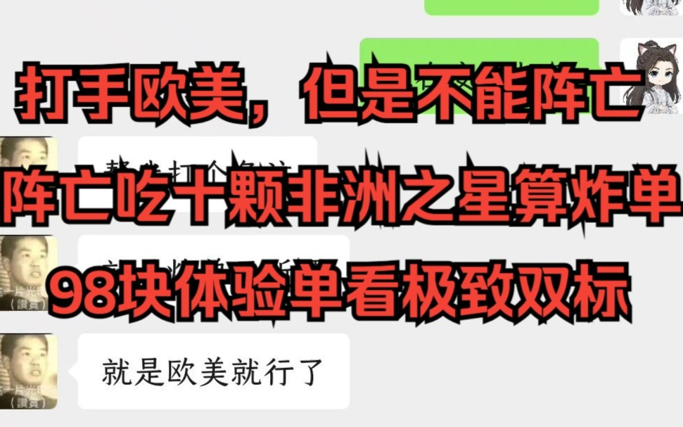 要求打手欧美打法但是打手不能阵亡否则吃10颗非洲之星也算炸单,98块钱的单子吃了2600w还不满意胡