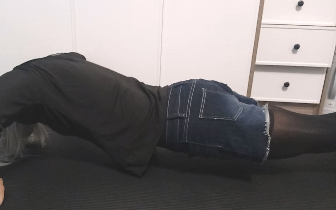 罩衫短裤黑丝俯卧撑