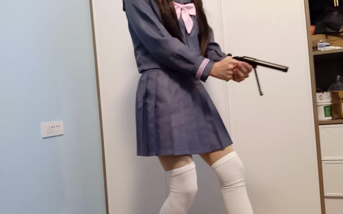 穿水手服把自拍杆当枪