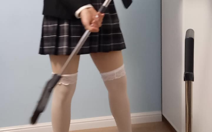 过膝白丝耍扫把