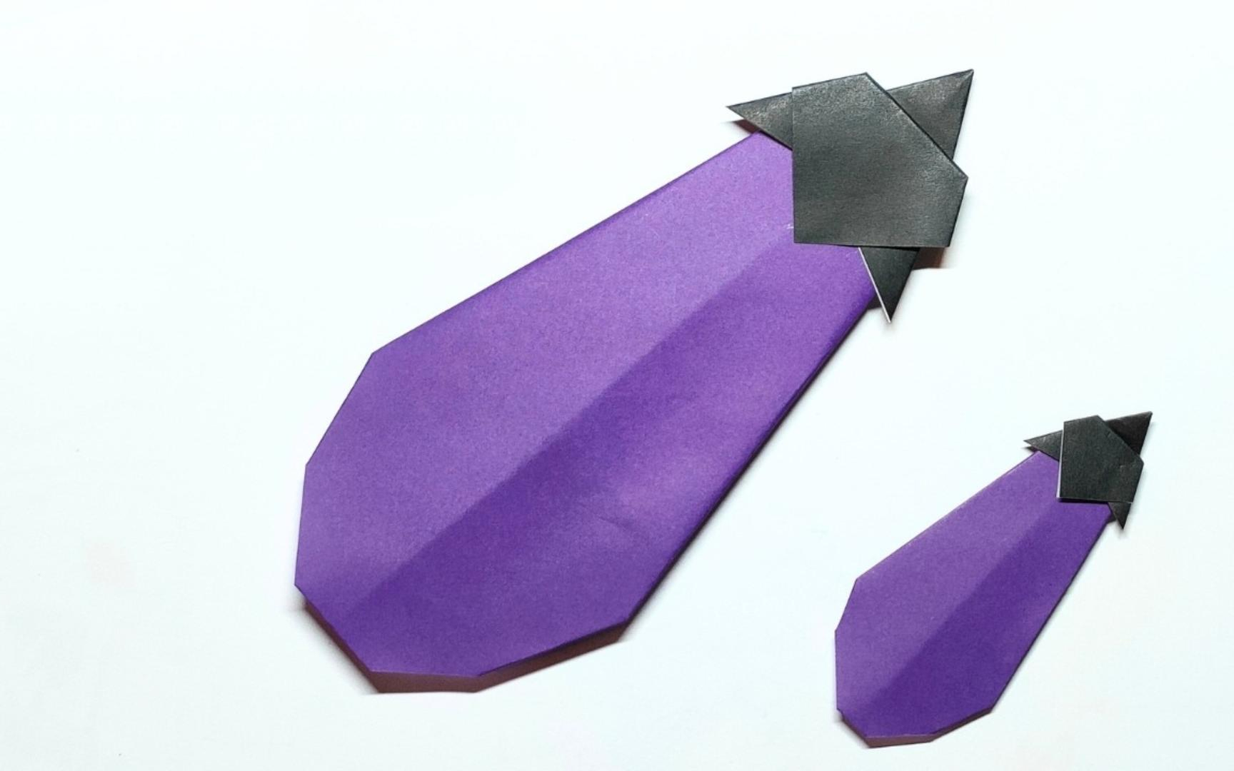折纸大茄子书签,简单有趣的视频折纸教程