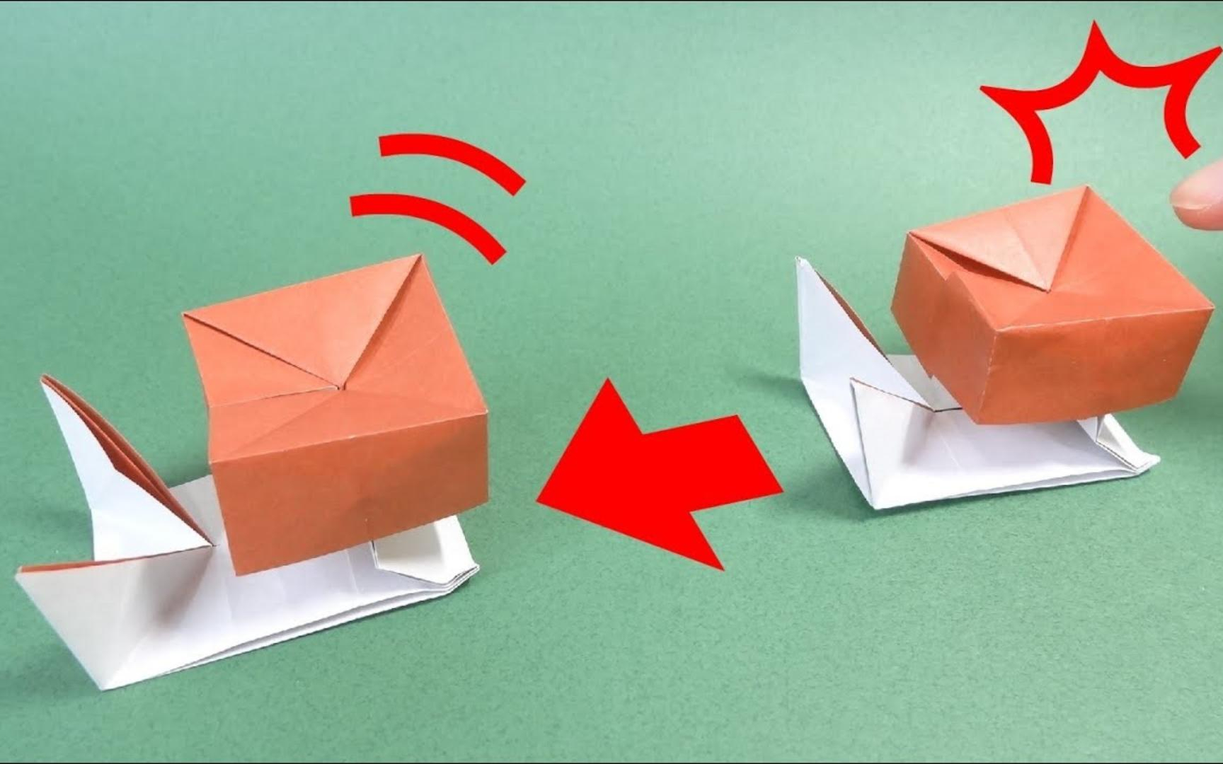 教你折纸极速蜗牛,按一下就能动起来,超好玩的折纸玩具