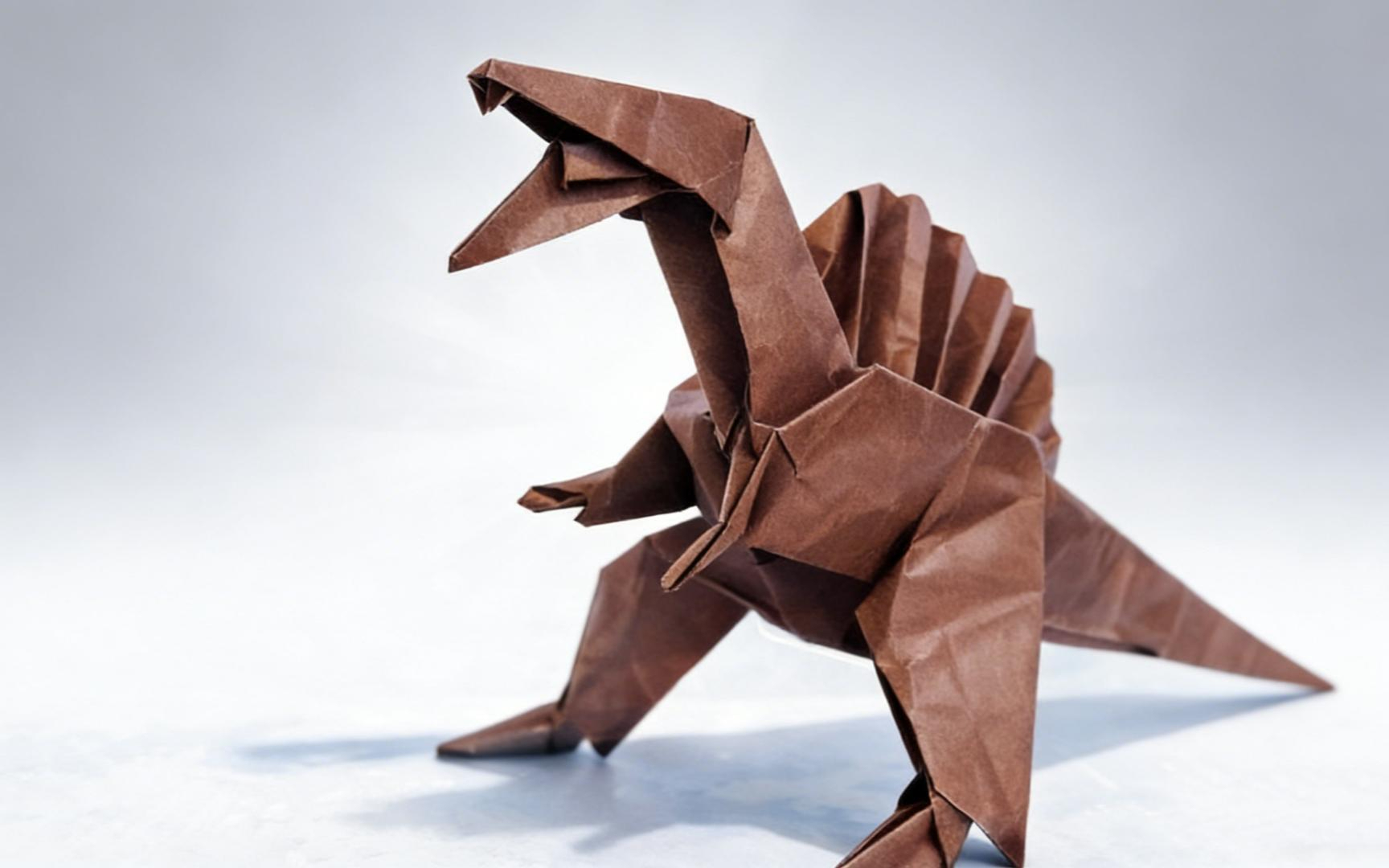 霸气的折纸棘龙,一张正方形纸就能折出来,栩栩如生!