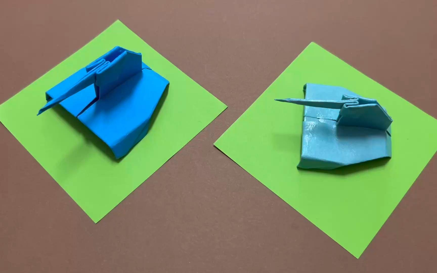 最简单的坦克折法,摆在桌上玩很有意思,坦克折纸玩具教程