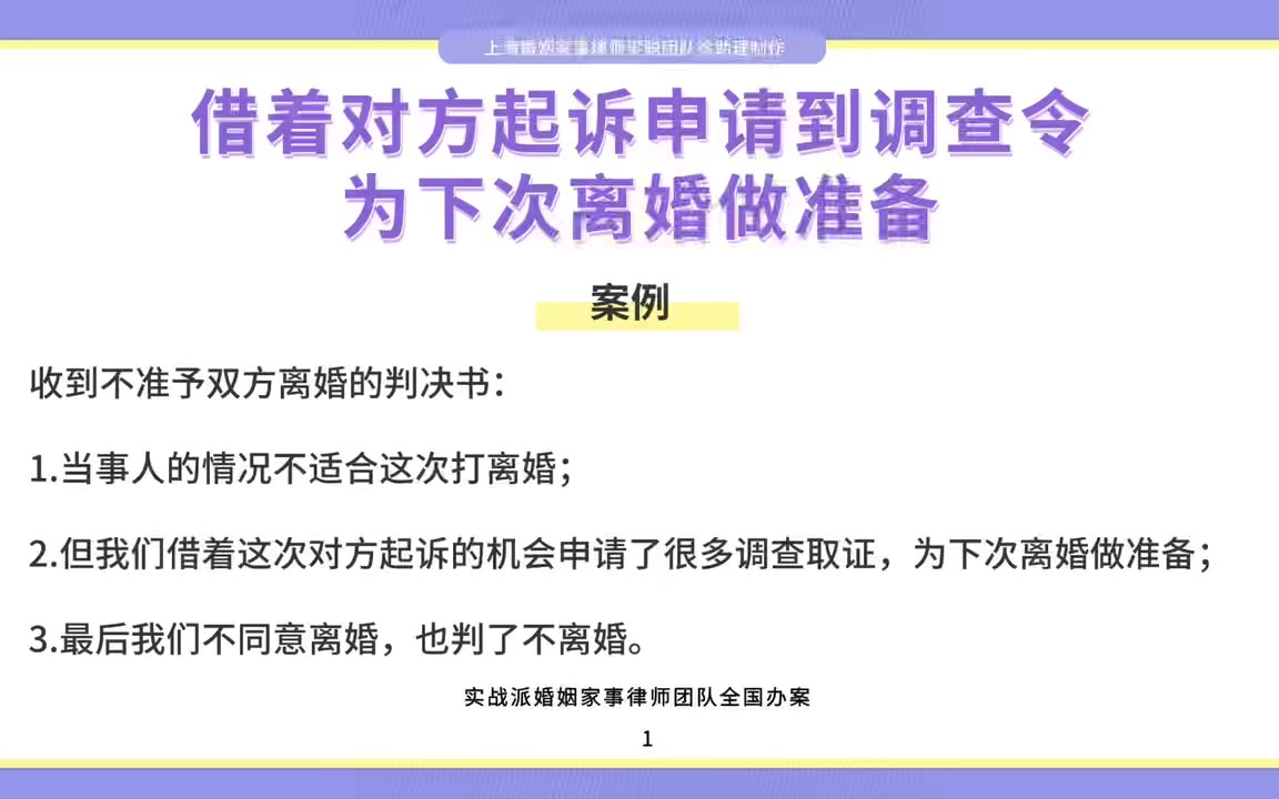 上海离婚律师梁聪律师团队原创:借着对方起诉申请到调查令,为下次离婚做准备