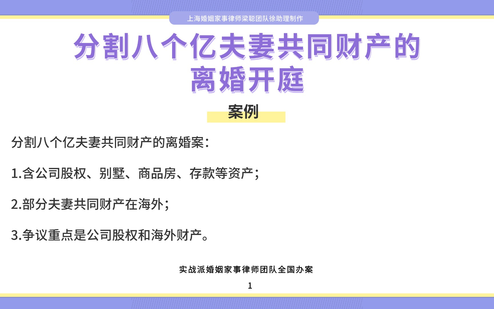上海婚姻家事律师梁聪律师团队原创:分割八个亿夫妻共同财产的离婚开庭