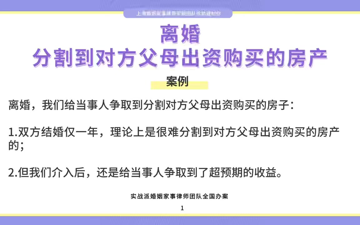 上海婚姻家事律师梁聪律师团队原创:离婚,分割到对方父母出资购买的房产
