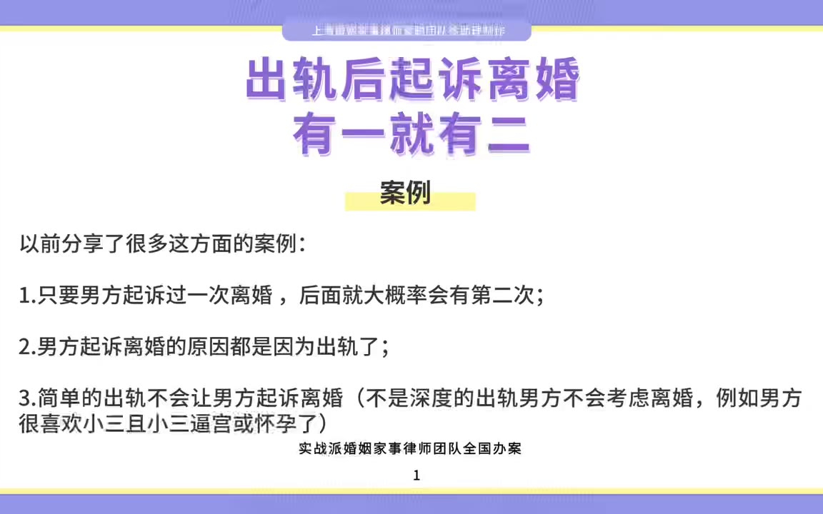 上海离婚律师梁聪律师团队原创:出轨后起诉离婚,有一就有二