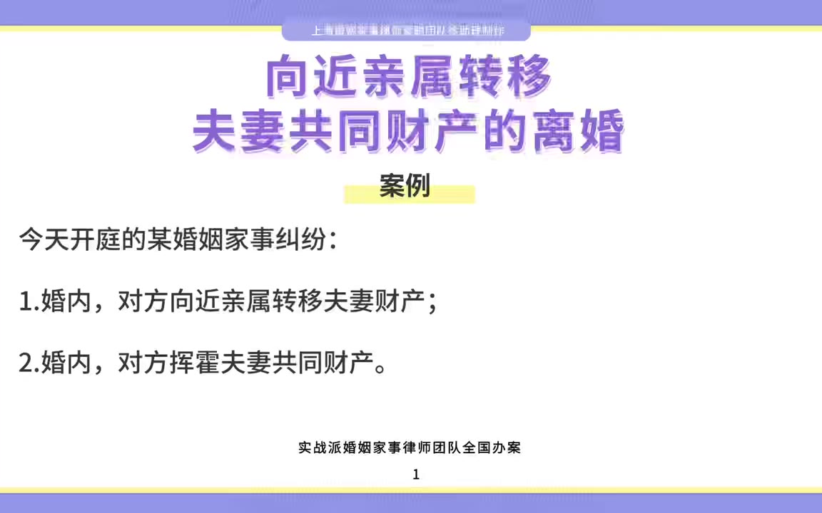 上海婚姻家事律师梁聪律师团队原创:向近亲属转移夫妻共同财产的离婚