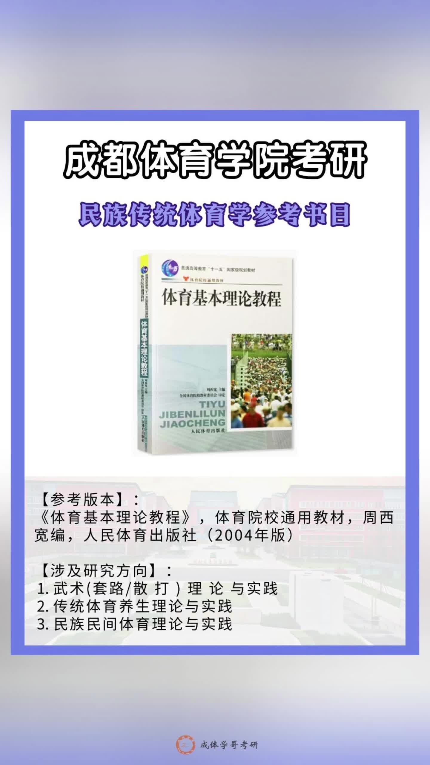 成体考研参考书目,成都体育学院考研民族传统体育学初试参考书目