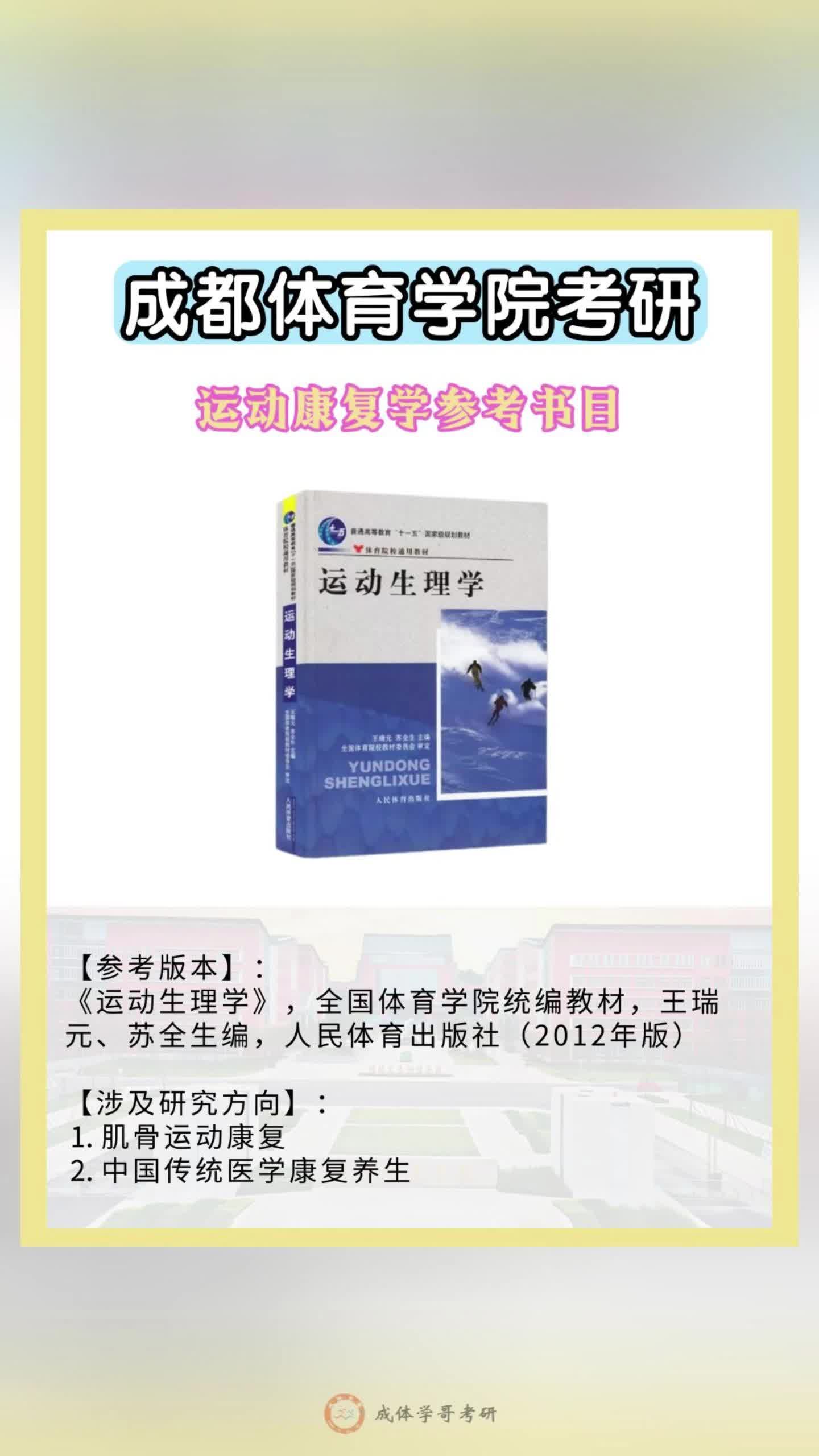 成体考研参考书目,成都体育学院考研612运动康复学初试参考书目