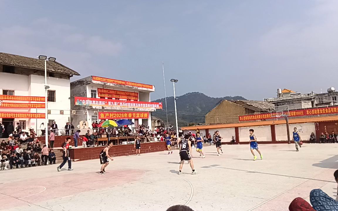容县杨村鱼产村文体广场的右边春节篮球赛